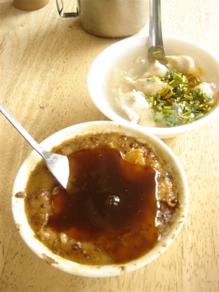 蚵捲很新鮮,沾著哇撒米吃超棒!虱目魚丸湯,頗為香甜。